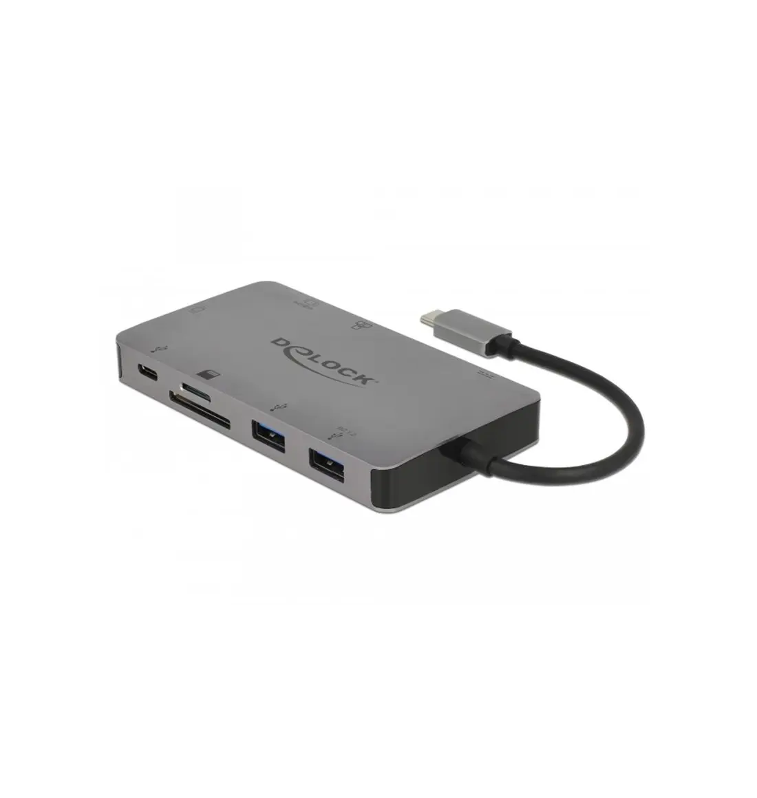 Questa docking station Delock può essere collegata ad un computer con una porta USB-C™ DP Alt Mode o Thunderbolt™ 3 e fornisce varie interfacce. Un monitor può essere utilizzato con l'uscita HDMI o VGA. Tre porte USB integrate consentono l'uso di periferiche e le connessioni per reti gigabit, così come un lettore di schede SD / micro SD card, ne completano le caratteristiche.