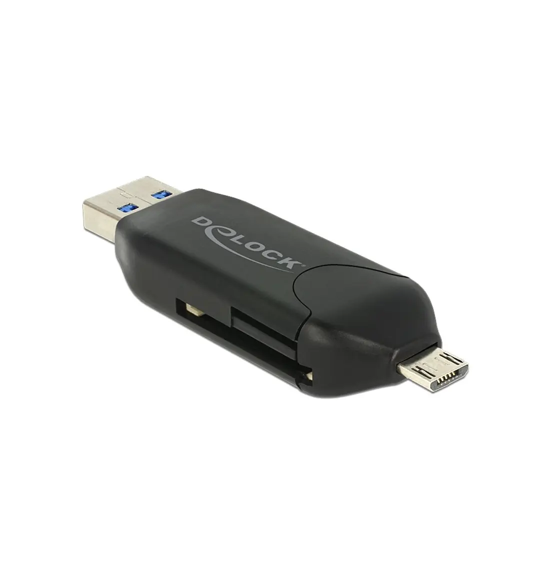 This Delock Card Reader enables you to read and write memory cards via Micro USB OTG port of your smartphone or tablet. Furthermore you can use the card reader comfortably on your PC.
