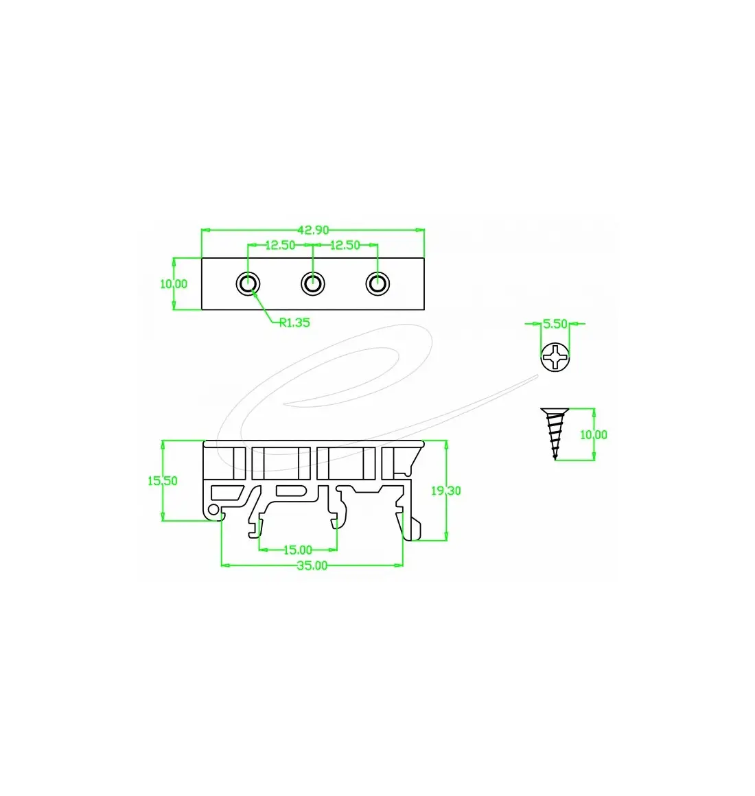 - Pitch of screw hole: ca. 12.5 mm