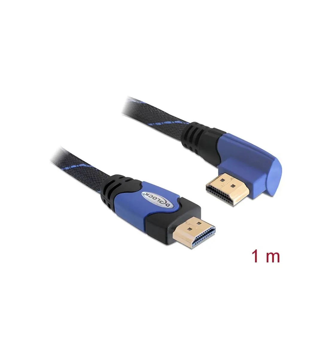 This High Speed HDMI with Ethernet cable by Delock complies with the latest HDMI standard and combines fast data transfer as well as audio-/ video- and Ethernet connection. Thus you can connect e.g. your PC or o DVD / Blu-ray drive to a monitor or TV. The angled connector helps to reach also a HDMI port which is difficult to access. The HDMI-A interface is downwards compatible to its forerunners and enables you to use your existing devices.