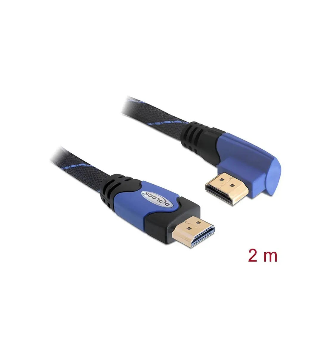 This High Speed HDMI with Ethernet cable by Delock complies with the latest HDMI standard and combines fast data transfer as well as audio-/ video- and Ethernet connection. Thus you can connect e.g. your PC or o DVD / Blu-ray drive to a monitor or TV. The angled connector helps to reach also a HDMI port which is difficult to access. The HDMI-A interface is downwards compatible to its forerunners and enables you to use your existing devices.
