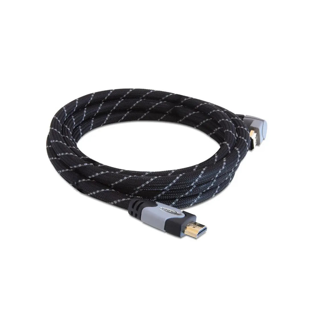 This High Speed HDMI with Ethernet cable by Delock complies with the latest HDMI standard and combines fast data transfer as well as audio-/ video- and Ethernet connection. Thus you can connect e.g. your PC or o DVD / Blu-ray drive to a monitor or TV. The angled connector helps to reach also a HDMI port which is difficult to access. The HDMI-A interface is downwards compatible to its forerunners and enables you to use your existing devices.